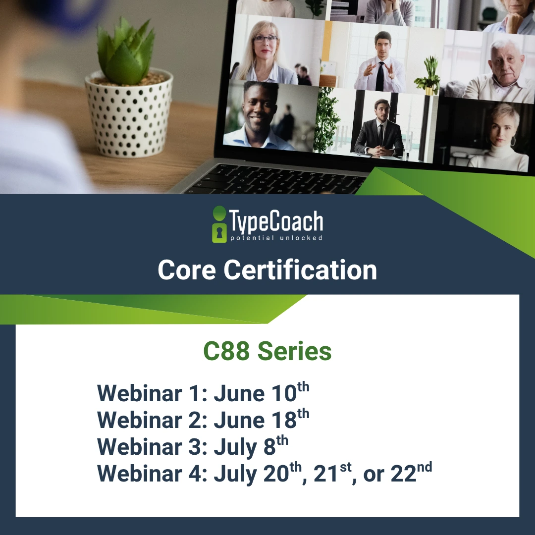 The TypeCoach Core Certification C88 is an interactive four-part webinar series that provides graduates with all of the top-notch skills and resources needed to become a “go-to” expert in personality type and adaptive communication. You’ll be positioned to make a tremendous impact in your coaching or group training facilitation.